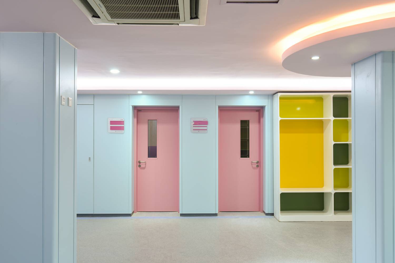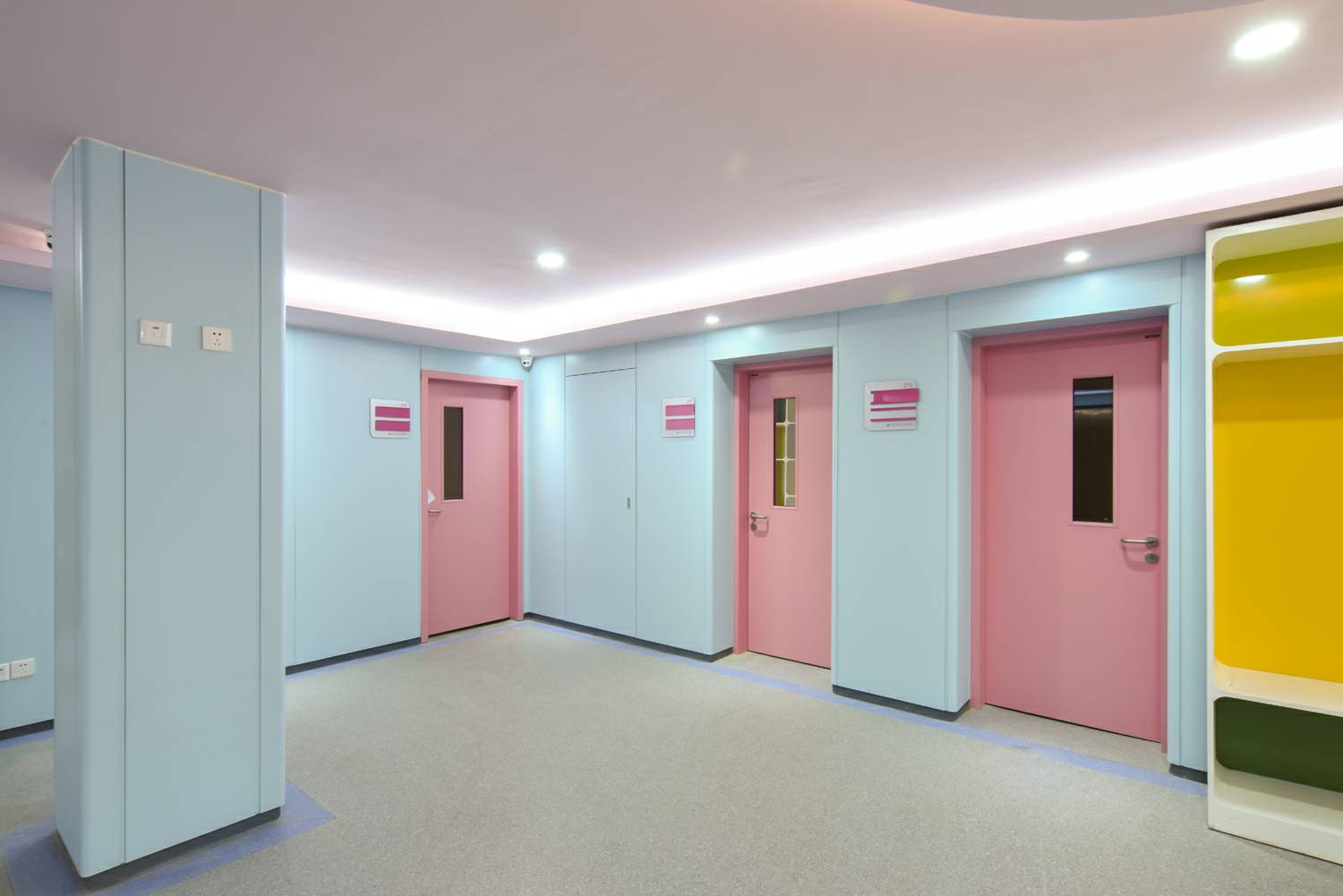 宁波文杰手机配件批发有限公司将“情感化”的色彩应用在钢质门及墙板,置身于医疗环境中,"将人的情感与知觉放在第一位",使患者享受医院环境带来的真诚的人性化关怀,打造具有人性化色彩环境的医院空间。